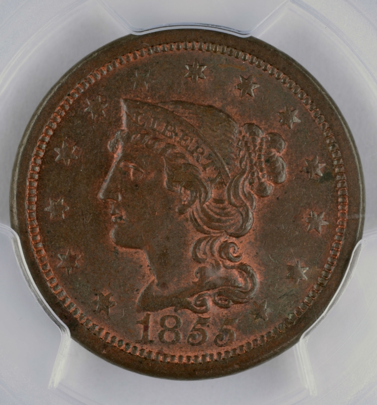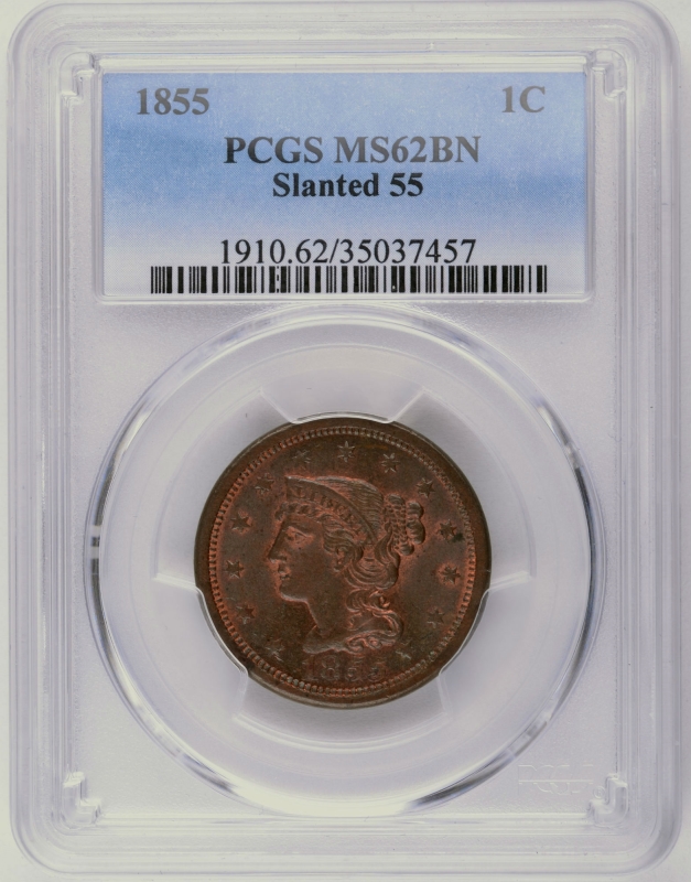 - 1855 Braided Hair Large Cent Slanted "55"