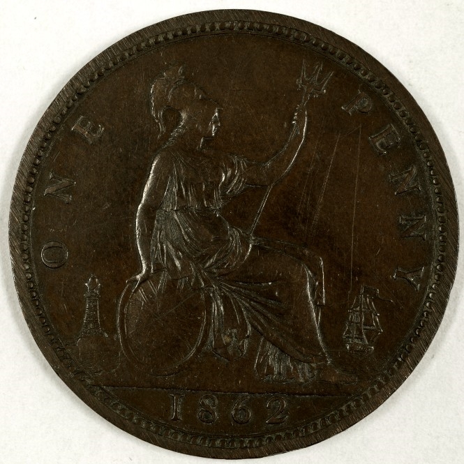 1862 Great Britain 1 Penny - Victoria (2nd portrait)