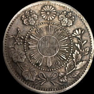 - Reverse: Sunburst crest within beaded circle and wreath, chrysanthemum between two paulownia flowers above