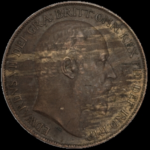 - Obverse: Uncrowned portrait of King Edward VII right, legend around