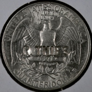 This coin is counterstamped on the obverse and reverse with "R.THIES".