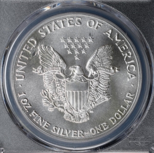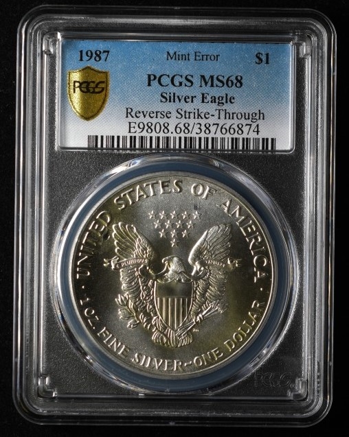 2015 $1 American Silver Eagle *Mint Error* Obverse Strike-Through - PCGS MS68