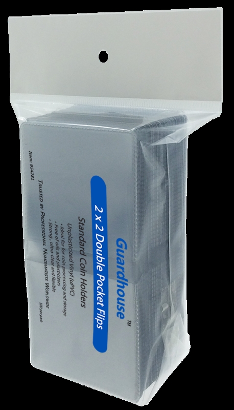 Pre-separated, 7mil, double polished unplasticized vinyl flips are a safe and reliable way to store and process coins. Guardhouse flips do not require tearing to separate and feature rounded corners that will not poke or cut your hands. These flips are about 20% thicker than other standard coin flips, and designed for medium to long term storage needs.