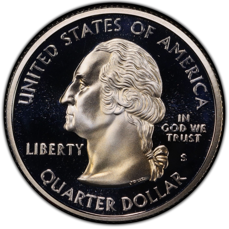 - Obverse: The portrait in left profile of George Washington, the first President of the United States from 1789 to 1797, is accompanied with the motto "IN GOD WE TRUST" and the lettering "LIBERTY" and it is surrounded with the face value and the inscription "UNITED STATES OF AMERICA"