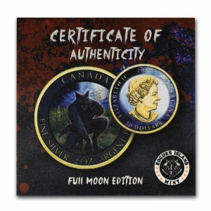 - Reverse: Features a black werewolf that has just killed it's prey with a full moon background; The issuing country is above with weight and composition below