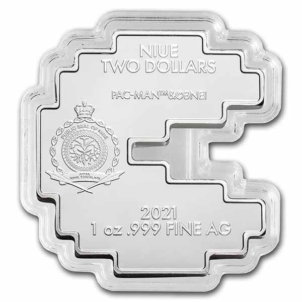 At 13 pixels high and 12 pixels wide, each PAC-MAN shaped coin is the exact number of pixels according to the specifications provided by BANDAI NAMCO Entertainment Inc. for the original 1980s classic arcade game! Each "pixel" is .116 inches by .116 inches. APMEX has brought this pixelated icon of gaming to life in 3 dimensions of solid Silver while sporting that bright PAC-MAN yellow!