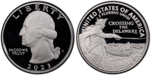 2021-S U.S. 25¢ - General George Washington Crossing the Delaware Quarter - Silver Proof