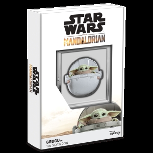 Made popular by the series The Mandalorian, this coin for Grogu is officially licensed by Lucasfilm Ltd. A Certificate of Authenticity is printed on the box along with the coin’s unique number in the limited 10,000 mintage.
