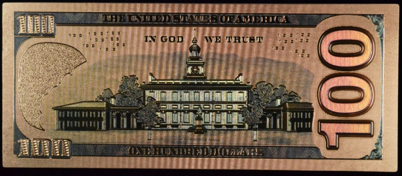 • Replica of a Small Size $100 Federal Reserve Note
