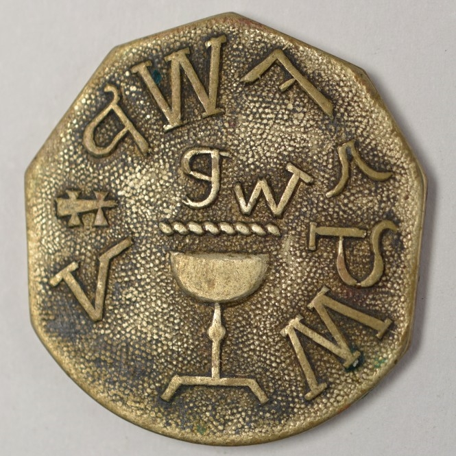 - Reverse: Chalice with rope above and lettering around