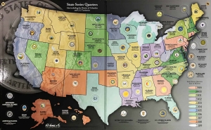 With this wall map, you can proudly display your entire collection of state series quarters, including the D.C. and U.S. Territories Quarters, and share the beauty and history of these unique and valuable coins with everyone who enters your home.