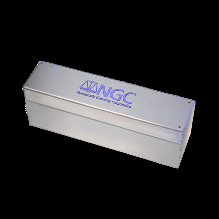 Holds 20 NGC Slabs in a sturdy metallic colored box with the NGC logo in raised blue print.